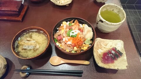 いせずしさんは小田原の名店の一つで、オーナーが毎朝、小田原漁港から直接買い付けた食材を扱っています。とても新鮮な素材をふんだんに使った海鮮丼を堪能させていただきました(^^♪