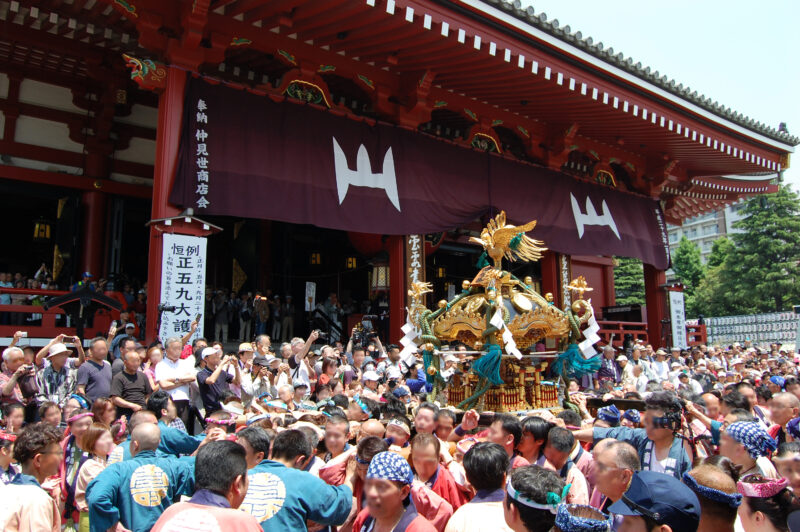 「神輿」とは、「高貴な人が乗った輿」という乗り物が由来となっています。普段、神社に祀られている神様が、祭りの際に、氏子地域や御旅所にお出になるために神輿に乗ります。氏子たちが神輿を担ぐのは、神社から出た神様がその力を振り撒き、災厄や穢れを払ってくれるという意味があります。そこで、神輿を激しく揺さぶることによって、神の霊威を高めて五穀豊穣などを願います。
