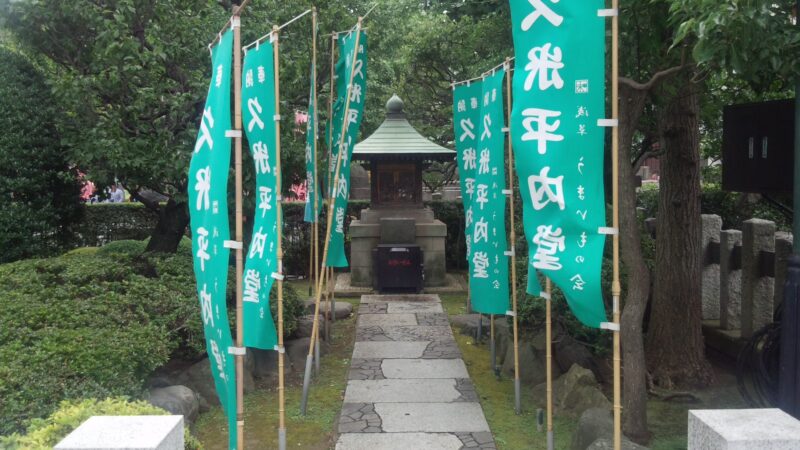 由緒は、この平内さん、辻斬りだったとか、首切り役人だったとか言う浪人だったようで、自分が死んでから少しでも罪が軽くなるようにと、宝蔵門の前に自分の像を埋め、たくさんの人に踏んでほしいと願ったとか…
